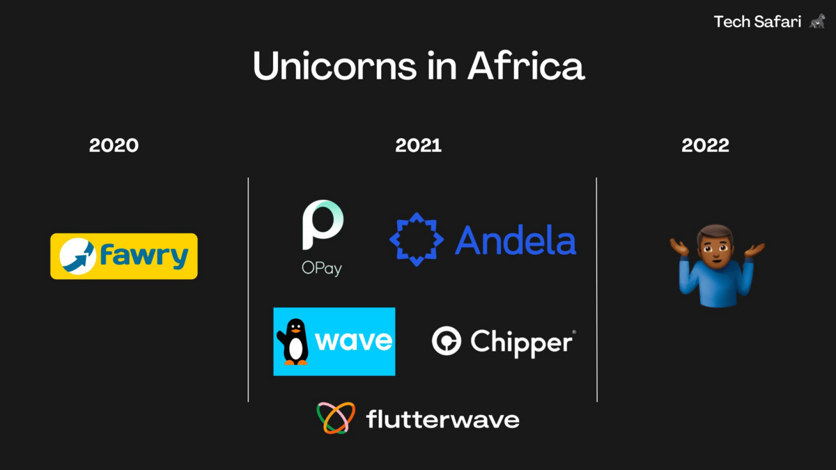 And in 2022, no new unicorns were born in Africa.