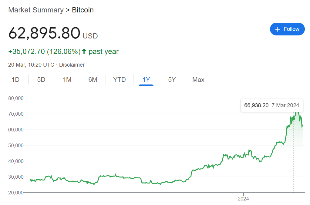 Bitcoin price chart over the past five years.