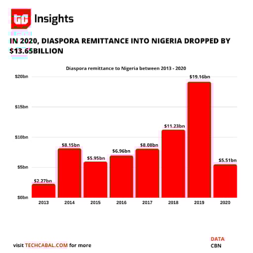 And while remittances in crypto have spiked up, diaspora remittances in fiat currency (non-crypto currencies) have taken a hit.
