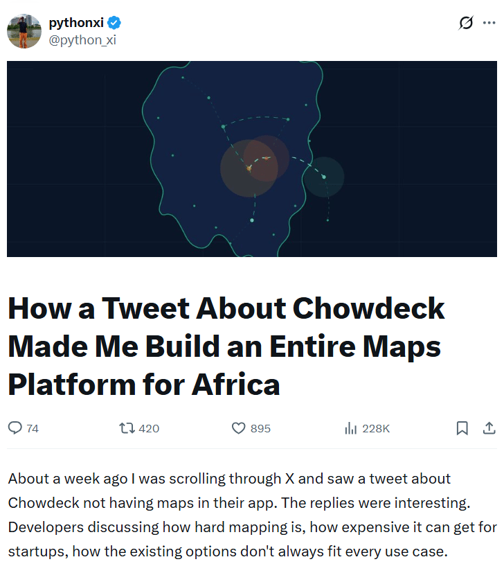 This Nigerian founder integrated Google Maps API into his food delivery app, only for the cost to end up killing his company. Source: X.com