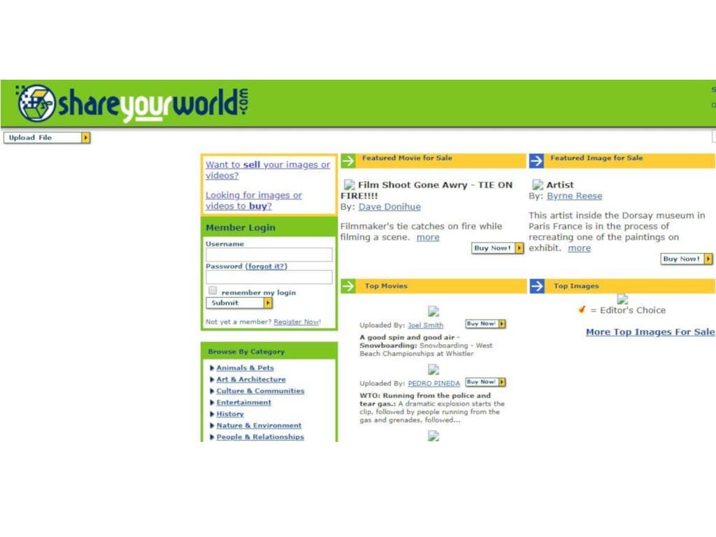ShareYourWorld’s homepage in 1997. It was the first video-sharing website on the internet