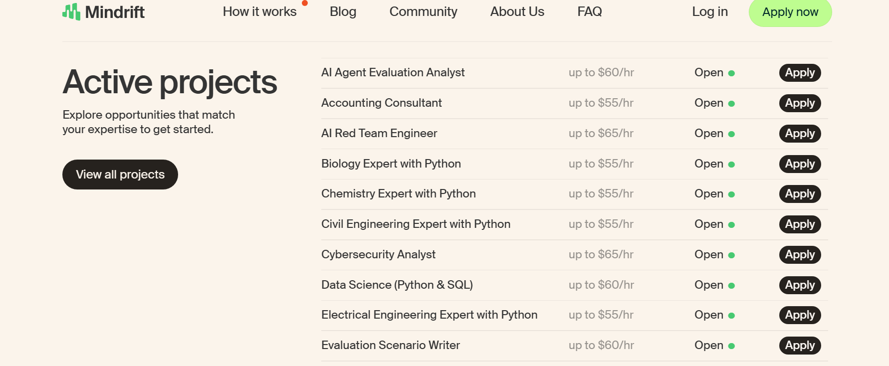 Here are some openings on Mindrift, an AI-training outsourcing platform
