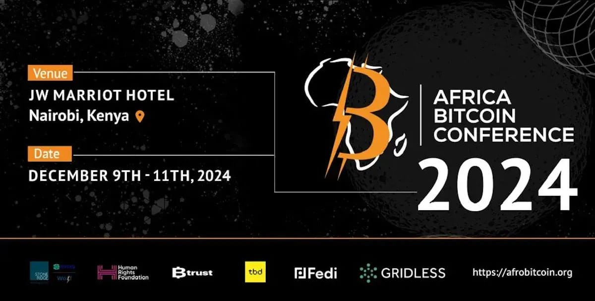 The 2024 Africa Bitcoin Conference is coming to Nairobi from December 9th - 11th, 2024, at the JW Marriott Hotel! This three-day event is all about driving Bitcoin adoption across Africa and building stronger international connections. Don’t miss out – grab your tickets here!