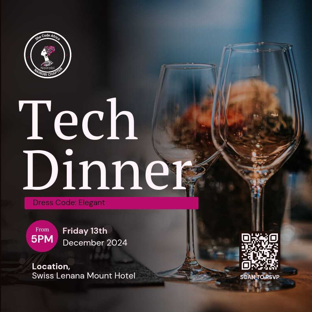 She Code Africa Nairobi Chapter is hosting a tech dinner at the Swiss Lenana Mount Hotel on Friday, 13th December 2024. Get ready for an evening of amazing conversations, great food, and inspiring connections. Grab your ticket here!