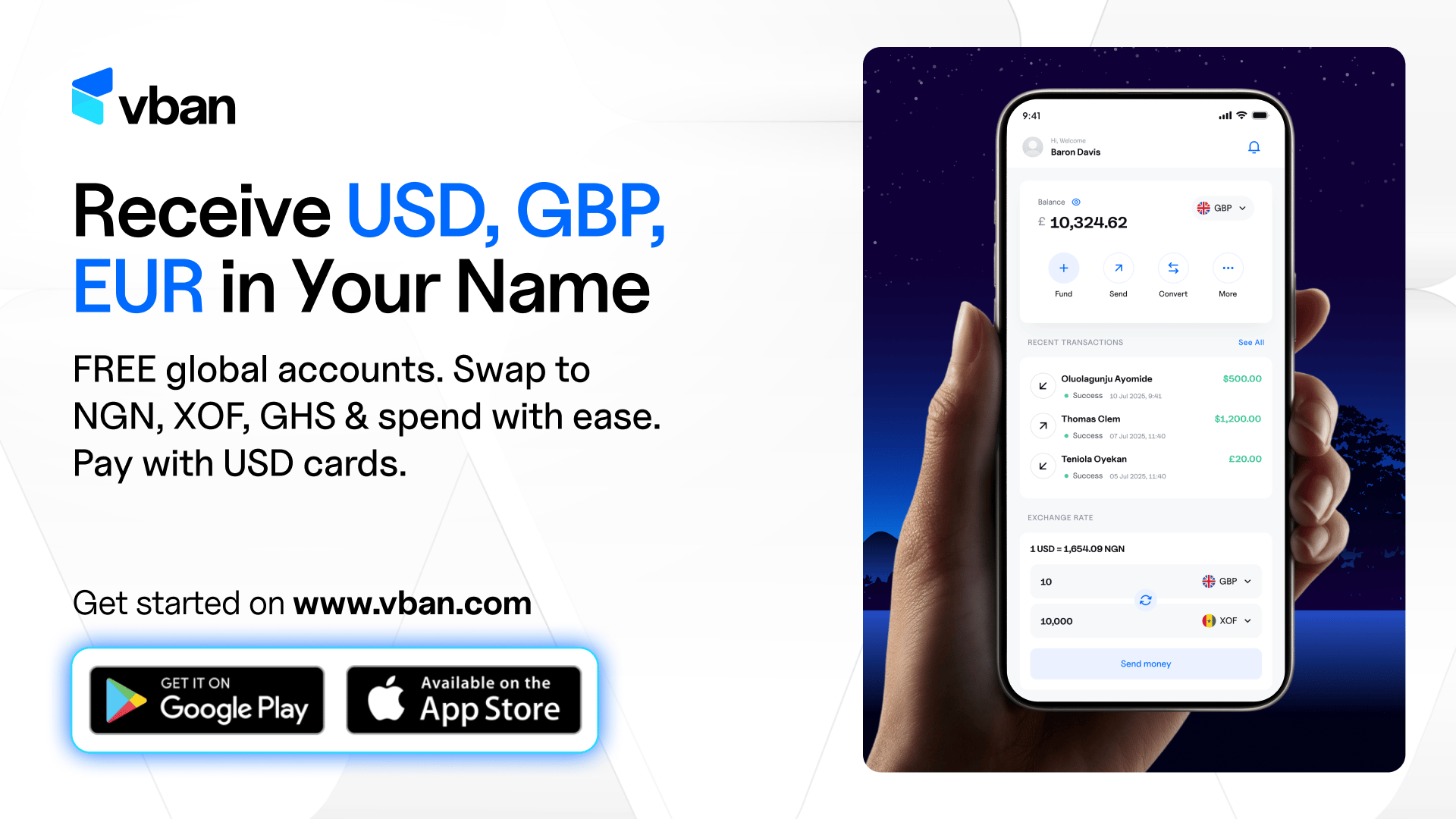 That’s what Vban is solving for Africa’s freelancers and digital nomads. It’s the one app that lets you receive dollars or euros, swap them to your local currency instantly at rates that make sense, and spend online with a virtual card.