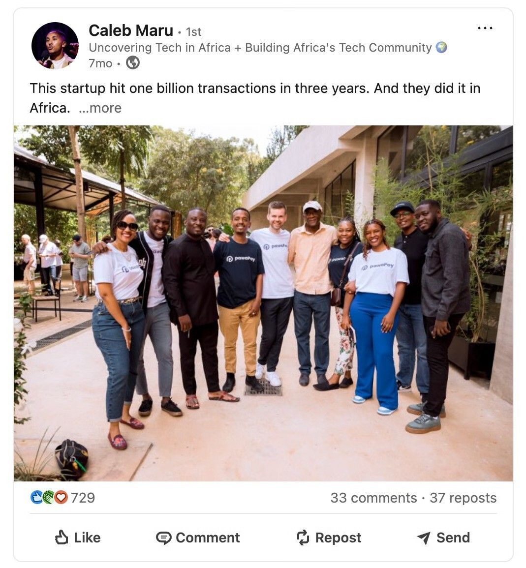 Like pawaPay, when they hit 1 billion mobile money transactions: