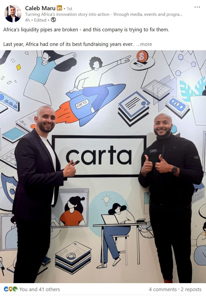It’s the same capital - but moving at the speed of trust. What do you think about Carta’s entry into Africa?