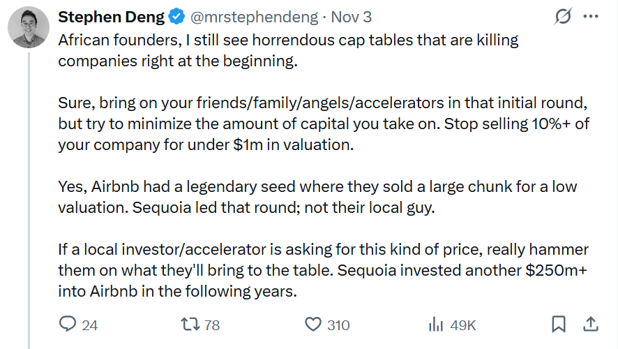 Stephen Deng, a GP at DFS Lab, brings up Africa’s cap table problem, linked to poor visibility over equity ownership.
