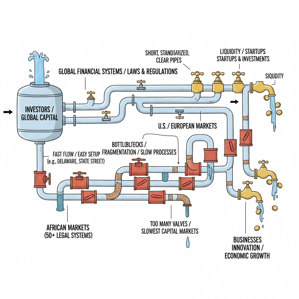 In Africa, the pipe is long and fragmented across many 50+ legal systems, with too many valves that act as bottlenecks.