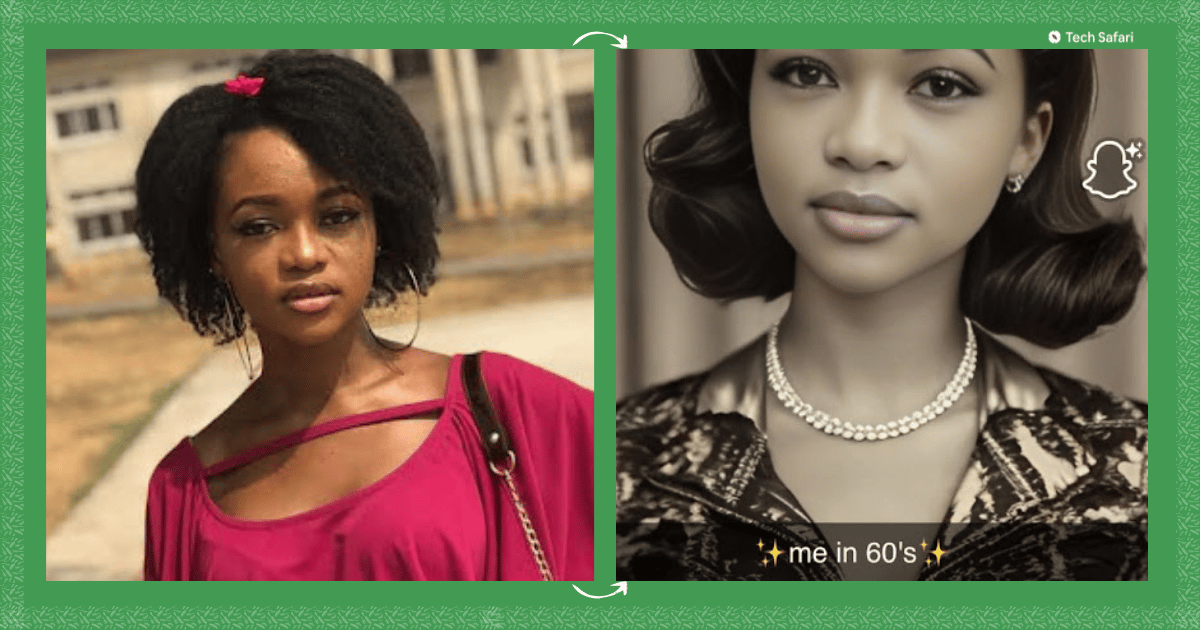 Tehila’s picture with 4C coily hair vs Snapchat’s ‘Me in the 60’s’ filter result of the same image